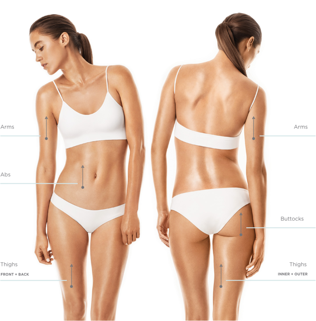 NuBODY is a 10-minute treatment that can be used on different parts of the body (arms, thighs, abdomen, buttocks). Each 10-minute session is performed on one body part. Both arms and legs are done in one 10-minute session as is abdomen 10-minutes and buttocks are 10-minutes.